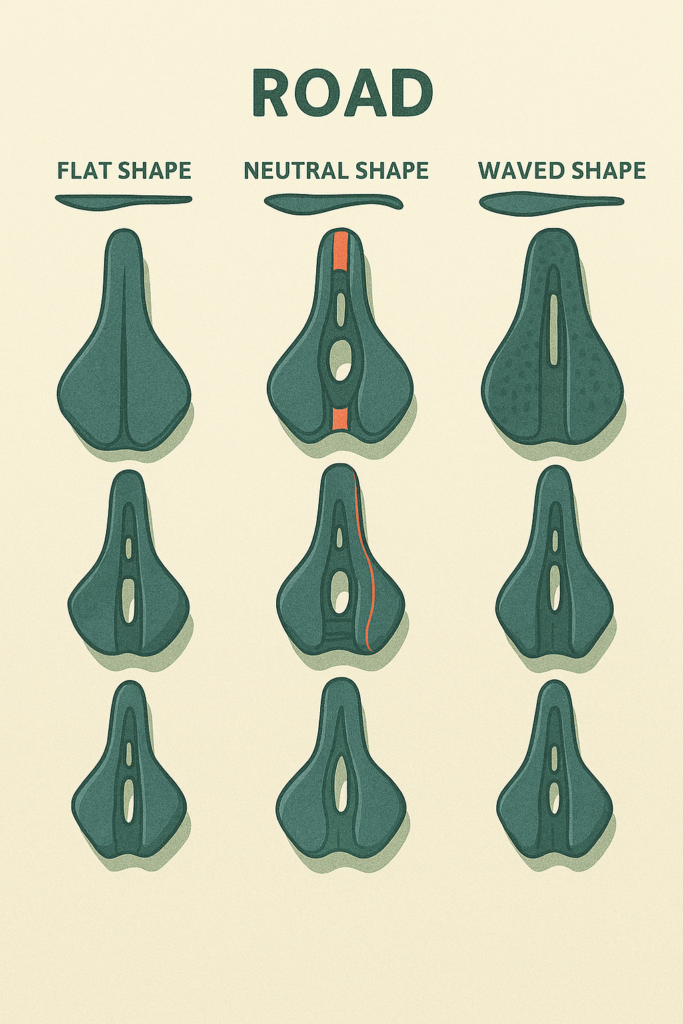 Poi si passa alla sella. Per sceglierla in modo sensato, i due criteri principali sono larghezza e forma. La larghezza va basata sulle ossa ischiatiche, non sull’aspetto del sedere: se è troppo stretta avrai pressione centrale, se è troppo larga sfregamenti laterali. La forma dipende molto dalla tua flessibilità: chi ha schiena rigida spesso si trova meglio con selle più curve che “guidano” il bacino; chi è più flessibile preferisce selle piatte che lasciano più libertà.